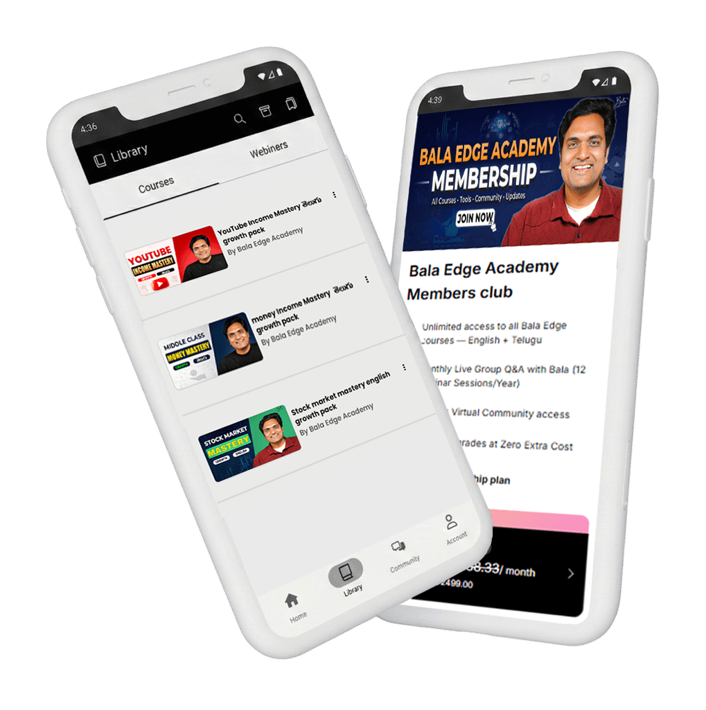 Bala Edge Academy is a premium learning platform that offers self learning video courses in English and Telugu. It is designed to help Indians and NRIs upgrade their money skills, career skills, business skills, digital skills, and life skills through one simple and powerful system.